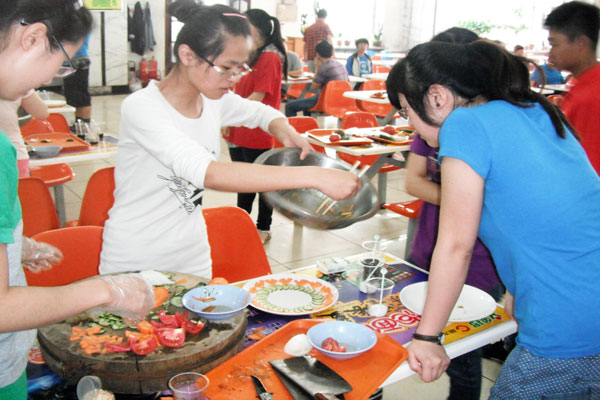 5月26日上午,由校团委主办、永乐高ylg030net及后勤集团饮食部党支部承办的第二届绿色厨艺大赛初赛在大学生美食城一楼顺利举行。出席本次活动的嘉宾有团委书记李蕊老师,采购加工中心主任李铁军,饮食综合办公室主任李景刚,美食城主任李大河,资深美食家王威老师以及陈铁男大厨。共有A、B两组的20余支队伍参加了本轮的比赛,他们用最家常的食材为我们奉献了一场饕餮大宴。