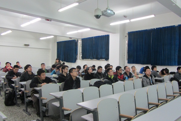 宣讲会开始,主持人先对整场竞赛的流程作了介绍,然后声明了比赛的题型和规则。参赛选手进行了签到,有的选手确定了自己的队名。参赛选手互相交流,有不懂的选手询问组织部的工作人员,工作人员一一向他们解答不懂的问题。整个宣讲会气氛热烈融洽,选手们都为随后竞赛的激烈角逐做好了准备。
