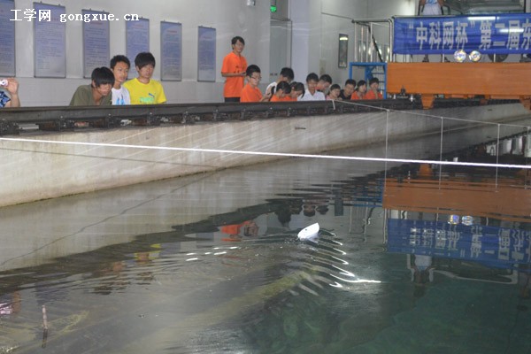 30日,竞速组决赛在拖曳水池正式举行。共5个学校的21支队伍参加了比赛。小船除了用统一的电机外,材料、形状、样式均有参赛选手自行设计。比赛在10.4米长、8米宽的水池里进行。决赛现场21艘小船蓄势待发,一艘艘小船承载着船海专业学子的知识与智慧,更是对动手能力、创新能力以及团队协作能力的检验。