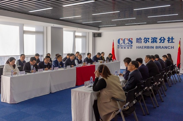 中国船级社哈尔滨分社副总经理于贵宝从中国船级社辖区业务、哈尔滨分设机构设置和业务情况、新能源和智能船舶技术研究及应用三个部分进行了汇报。