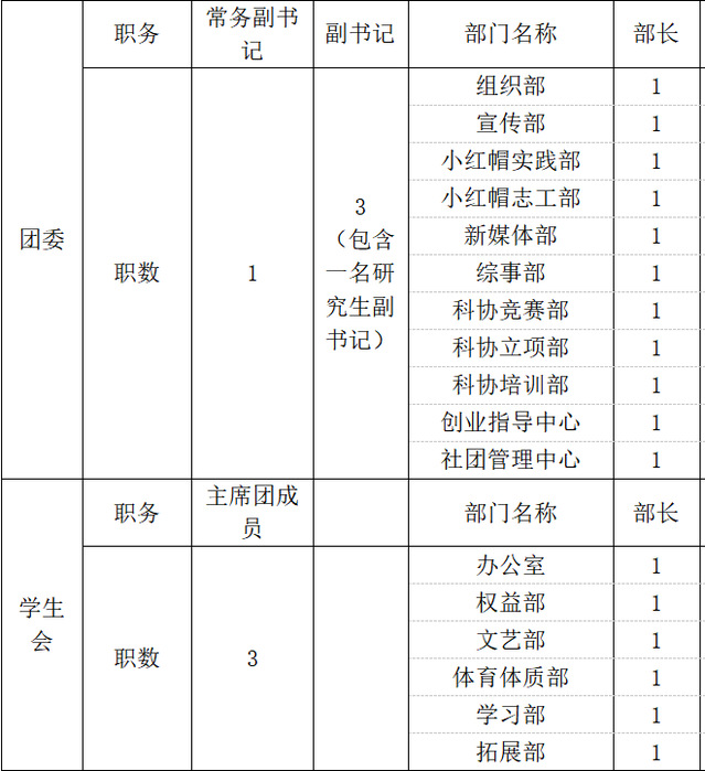 2、担任校、院学生组织部长职务的,应当具有至少1年的学生组织工作经历;