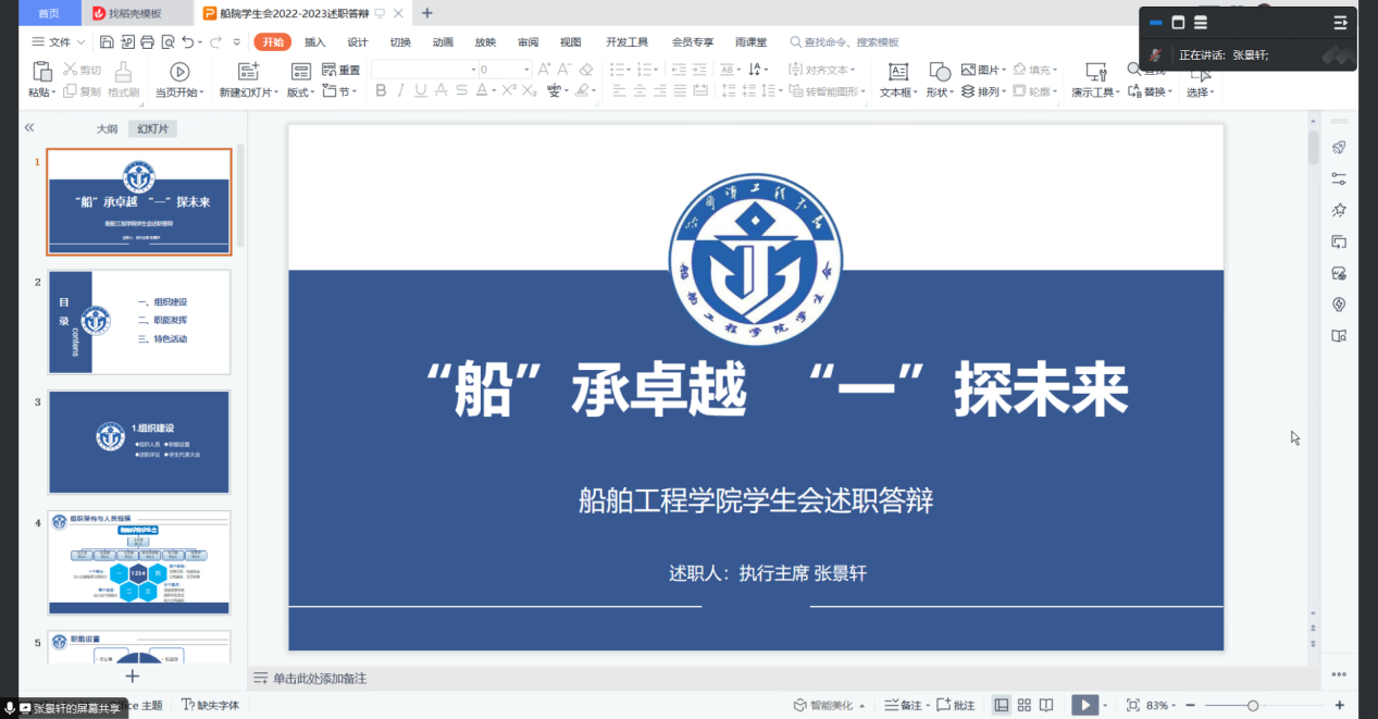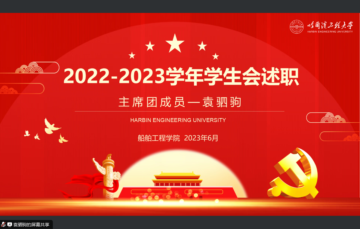 学生会主席团成员张景轩、吕可、袁驷驹及各部门部长就各部门2022-2023年度工作进行汇报,对过去一年的学生会工作进行了系统而全面的总结,赞扬了上一年度学生会工作取得的成果。随后各部长客观总结工作失误,反思工作不足,对下一年度的工作进行了展望。各部门工作人员认真学习各主席团成员及各部门部长的工作经验,在今后的工作中更好地为同学们服务。