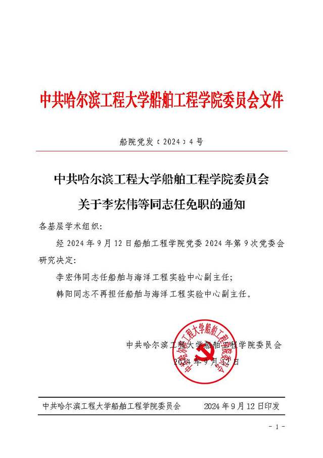 中共永乐高ylg030net委员会关于李宏伟等同志任免职的通知