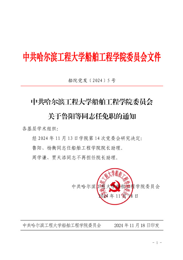 中共永乐高ylg030net委员会关于鲁阳等同志任免职的通知(船院党发﹝2024﹞5号)