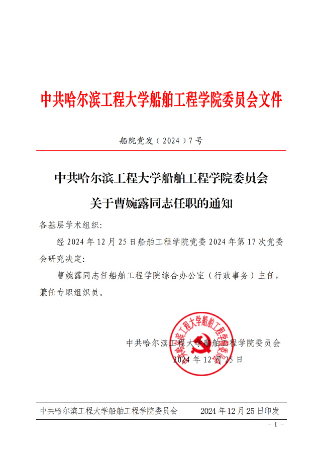 中共永乐高ylg030net委员会关于曹婉露同志任职的通知
