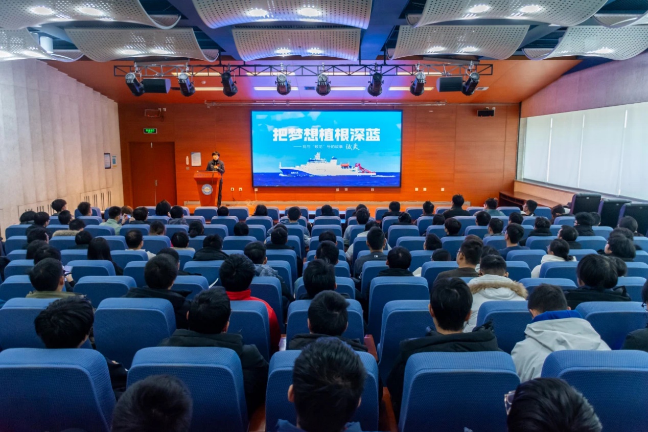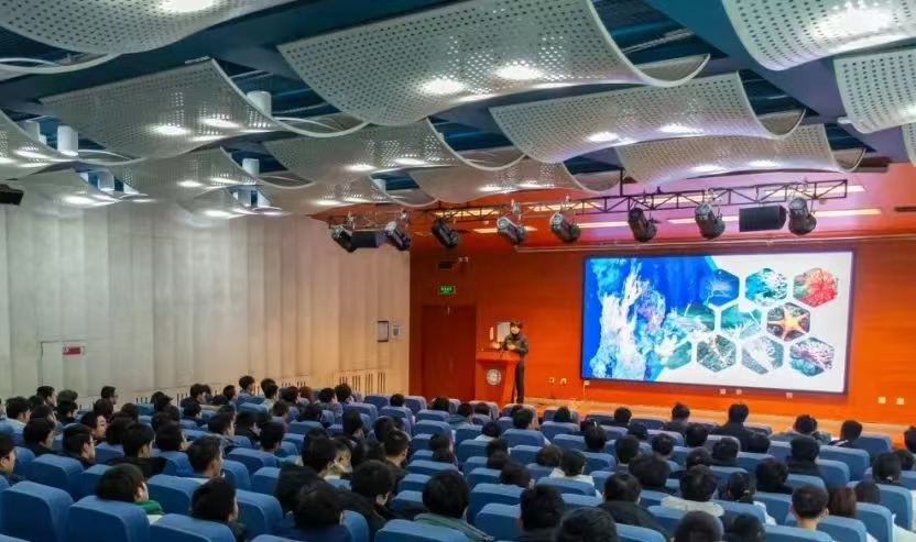 张奕分享了蛟龙号潜水器执行的一次具有里程碑意义的深潜任务。她利用真实的任务记录、珍贵的图片资料和数据分析,生动再现了深潜过程中从任务背景到实施细节,从团队协作到技术攻关的关键环节,使同学们不仅深刻感受到深潜技术的震撼魅力,也体会到载人深潜在探究深海资源、揭示海洋秘密以及推动全球科技进步中的重要地位。